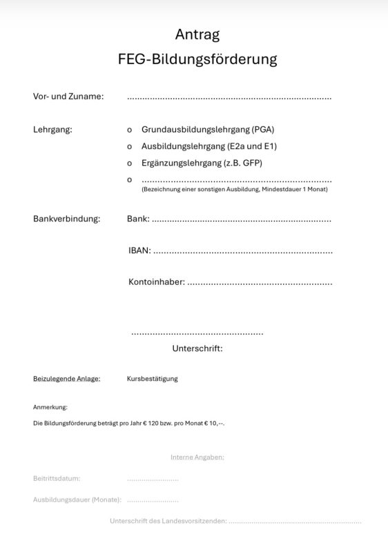 MUSTERFORMULAR FÜR DIE FEG AUSBILDUNGSUNTERSTÜTZUNG: